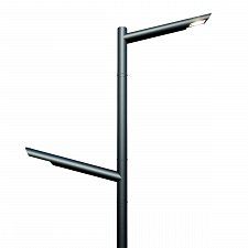 Комплекс освещения Ева конус 4-1-30 трубчатый представляет собой одноконсольную уличную опору высотой четыре метра. Конструкция изготовлена из прочной стальной трубы диаметром восемьдесят девять миллиметров. Особенностью модели является угол наклона консоли в тридцать градусов, что обеспечивает направленное освещение целевой зоны. Вылет консоли составляет девятьсот миллиметров, что оптимально для локального освещения. Антикоррозионная защита обеспечивается комбинированным покрытием: горячее цинкование и последующее порошковое или полимерное окрашивание в любой цвет по каталогу RAL. На наклонную консоль устанавливается современный светодиодный светильник.